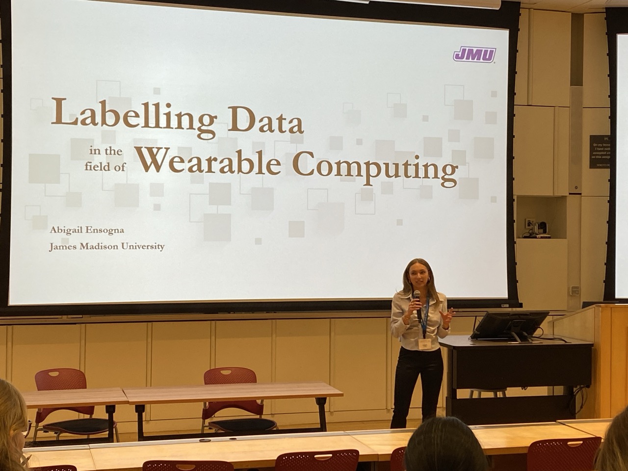 Two new members of the Wearable Computing Group, Julia Larson (Engineering) and Abby Ensogna (Computer Science), presented initial efforts on their work at the ACM Capitol Region Celebration of Women in Computing (CAPWIC).