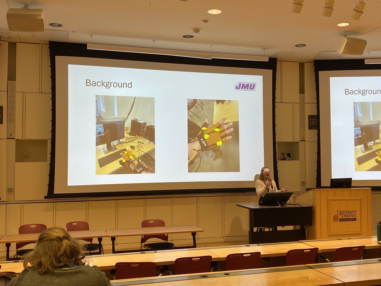 Megan Caulfield presented the results of her honors thesis, “Braille Learning using Haptic Feedback” at the 2024 IEEE Systems and Information Engineering Symposium on May 3rd at the University of Virginia. Her research examined the effectiveness of haptic feedback when learning to read and write braille which is motivated by the challenges of sighted parents and teachers learning braille to support their visually impaired children and students. She was advised by myself, Dr. Laura Deportes (Education), and Dr. Daniel Castaneda (Engineering). A special thanks also to the Virginia School for the Deaf and Blind for allowing us to tour their facilities.